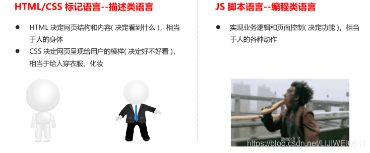 | 标记语言 | 标记语言(html)不用于向计算机发出指令,常用于格式化和链接。标记语言的存在是用来被读取的, 他是被动的。 |