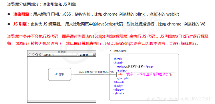 浏览器本身并不会执行JS代码,而是通过内置 JavaScript 引擎(解释器) 来执行 JS 代码 。JS 引擎执行代码时逐行解释每一句源码(转换为机器语言),然后由计算机去执行,所以 JavaScript 语言归为脚本语言,会逐行解释执行。