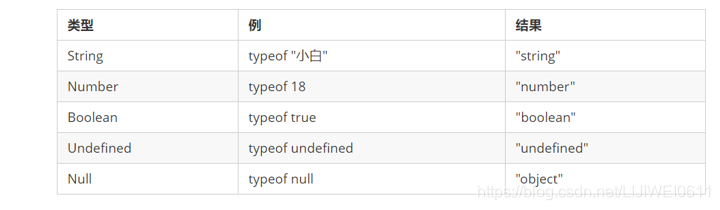 var vari = null;console.log('你好' + vari); // 你好nullconsole.log(11 + vari); // 11console.log(true + vari); // 1 获取检测变量的数据类型