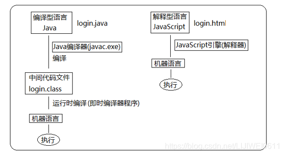 类似于请客吃饭: 编译语言:首先把所有菜做好,才能上桌吃饭 解释语言:好比吃火锅,边吃边涮,同时进行